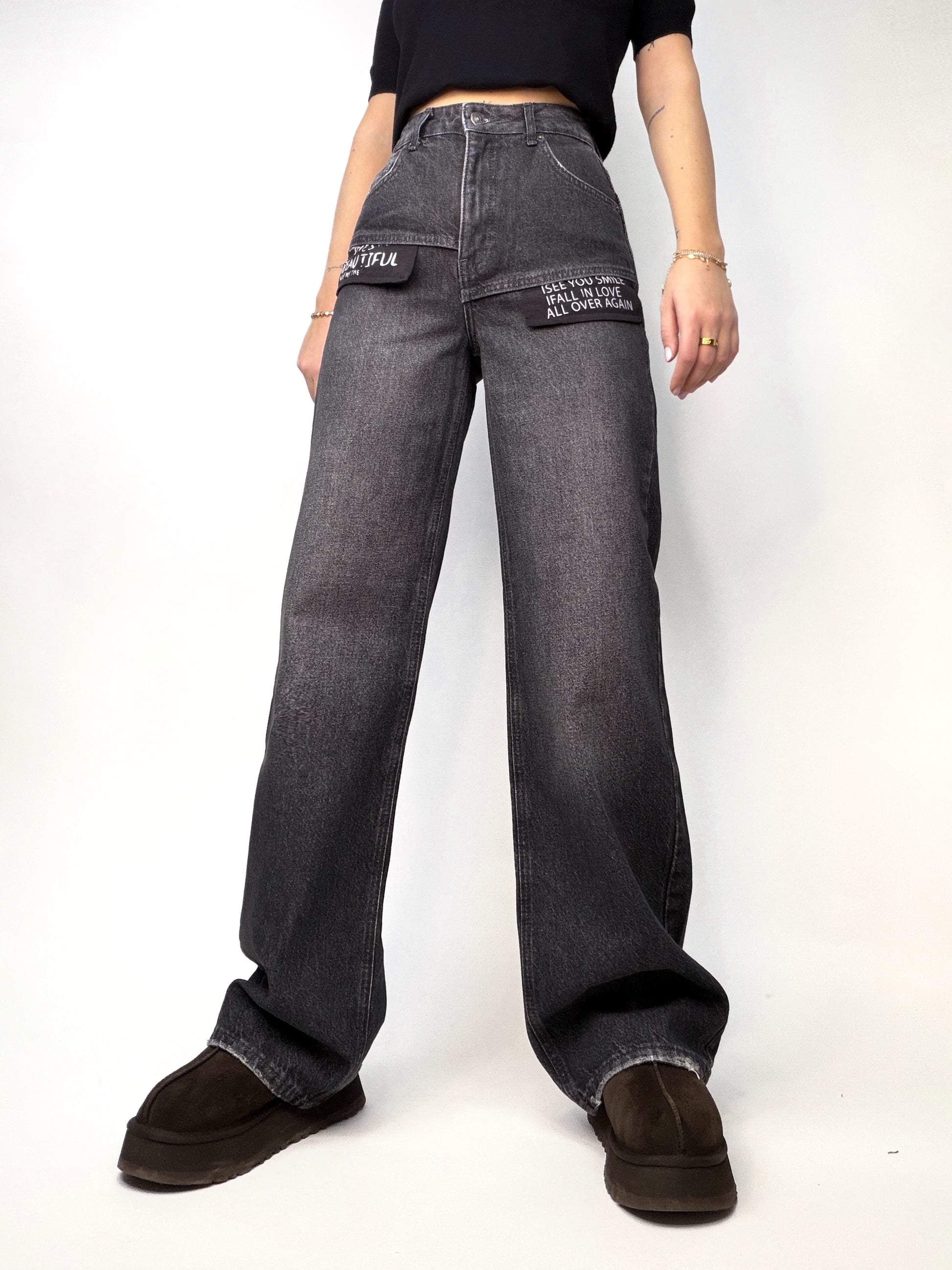 Blugi cu talie înaltă și croi larg, definiți de rupturi atent poziționate în partea de sus, care adaugă caracter și atitudine. Buzunarele aplicate la exterior completează designul cu un accent original și urban, oferind un look relaxat, dar cu personalitate.
